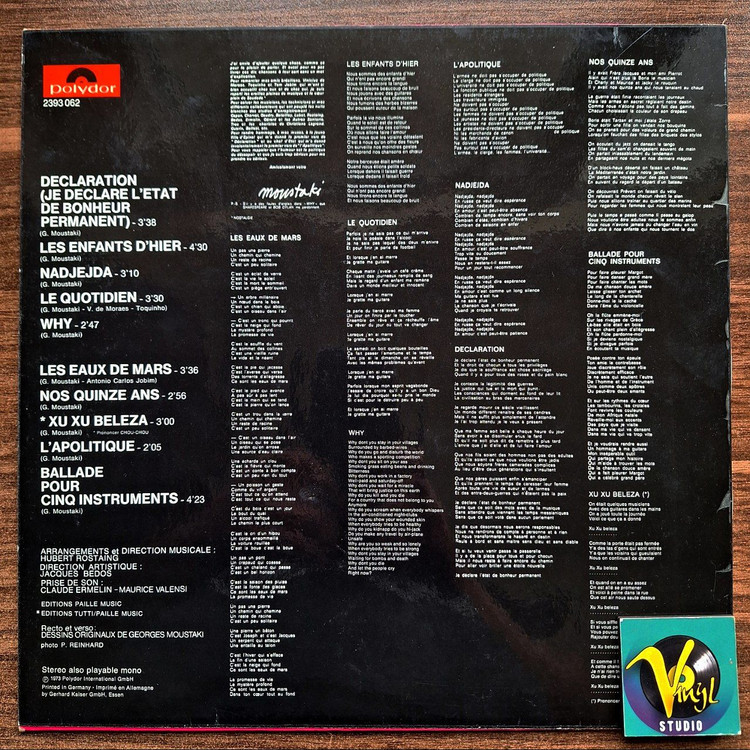 ترانه های عاشقانه فرانسوی با یکی از بهترین آلبوم های ژورژ موستاکی مشهور بر روی صفحه گرام